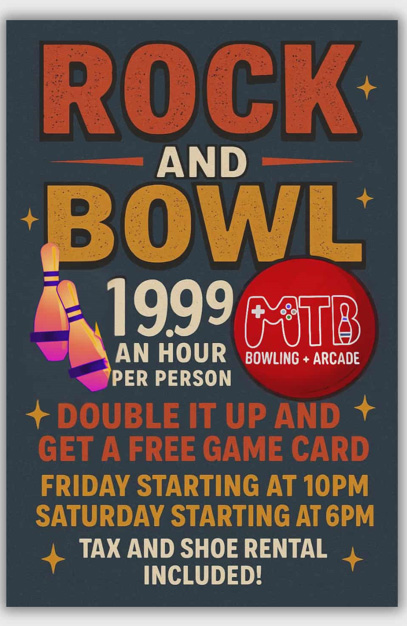 RESERVATIONS BY PHONE ARE STRONGLY ENCOURAGED AS WE CANNOT GUARANTEE WALK-IN AVAILABILITY (ESPECIALLY DURING GLOW BOWLING)